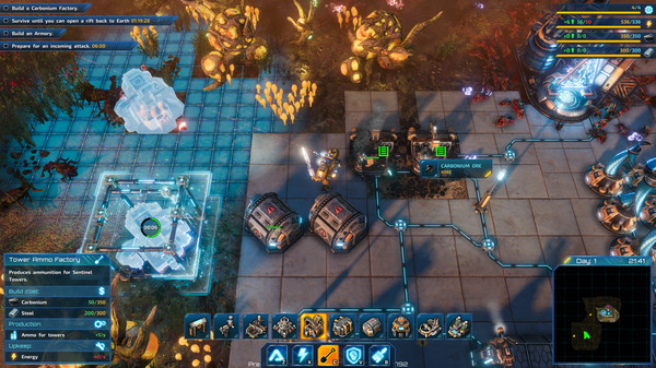 你在行星上的一举一动都会被注意。随着你破坏自然环境并建起工业设施,这颗行星也会将你视作敌人。你需要建造墙壁、障碍物、防御塔等防御系统,而你受到的攻击也会一天比一天猛烈。成千上万种生物都会想要把你从他们的星球除掉。
