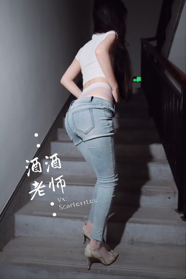 酒酒老师 – 紧身牛仔,裤里白丝 海外版