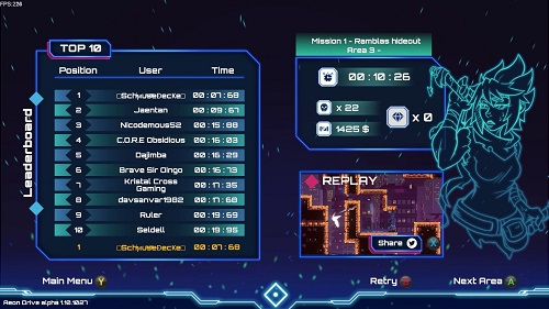 自由在时间中穿梭!Aeon Drive 赋予玩家独特的时间扭曲系统,帮助玩家避免遭受重复的挫败,并保持挑战关卡的新鲜感。