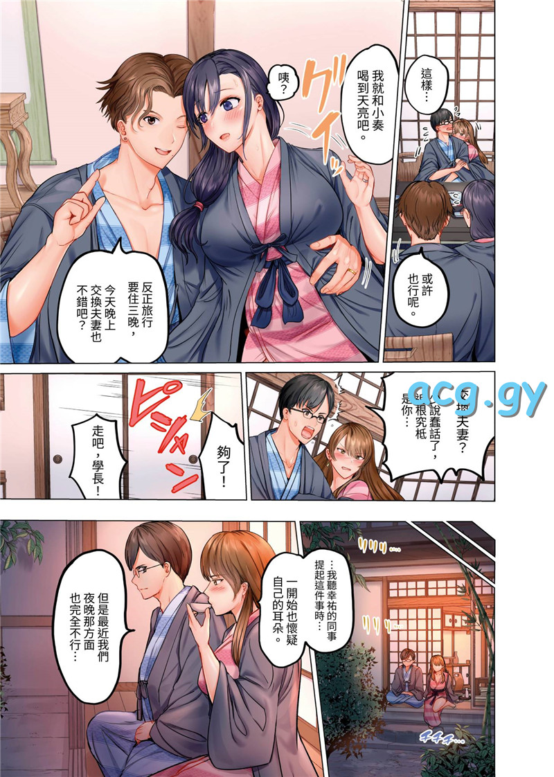 最爱的妻子外遇做爱的娇喘声隔着拉门传了过来,而我也被挚友的妻子榨出了精液…——为了成功怀孕而禁欲2个月的礼司与奏夫妻,计划要在温泉旅行时来进行「造人运动」,却因为某个契机被卷入了好友夫妻的『夫妻交换』之中。原本反对夫妻交换的礼司却在当天晚上,看见妻子和挚友激烈交缠的场面…而挚友的妻子・明日歌此时正陪在失落的礼司身边,「你可以把没给你太太的…全都射出来喔?」超越理智的悖德快感,蜿蜒的深处实在太舒服,不管射了几次都停不下来…