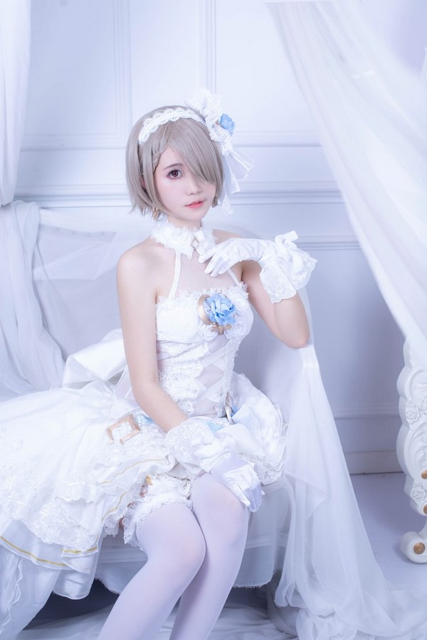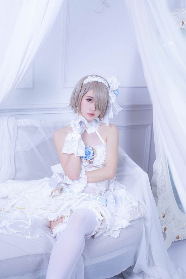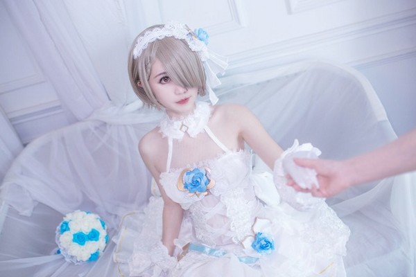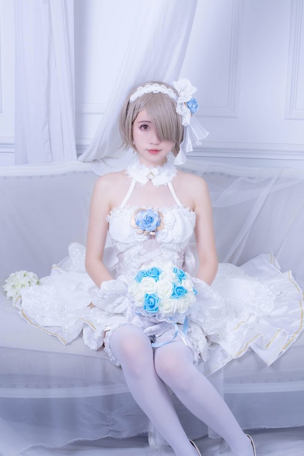 钟声敲响,白鸽飞起,冰蓝蔷薇上的露珠倒映出她盛装的身姿。