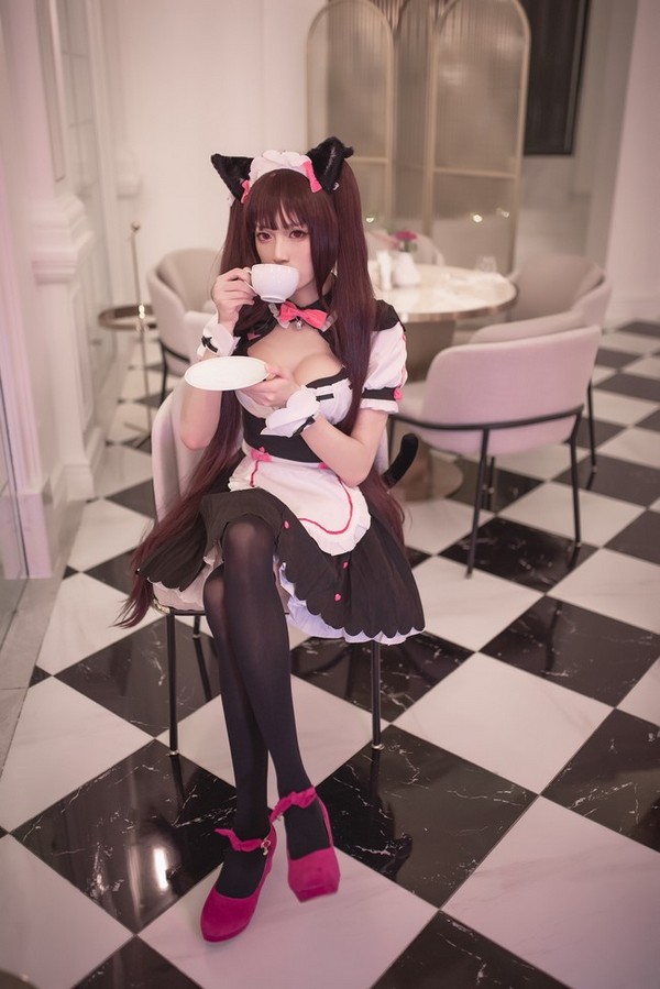 今天也是很元气的猫女仆巧克力呢♡ 在咖啡厅当女仆好快乐啊哈哈哈 总之超喜欢巧克力和猫娘乐园~!太可爱啦——!