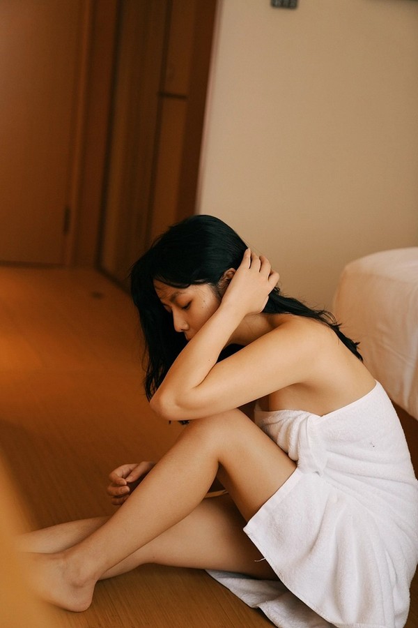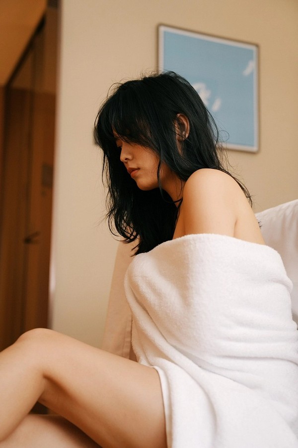 裹浴巾的少女