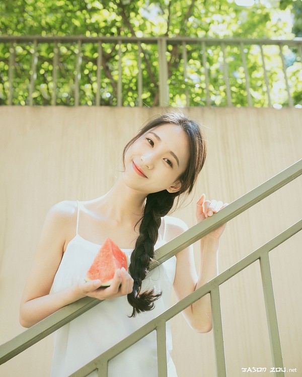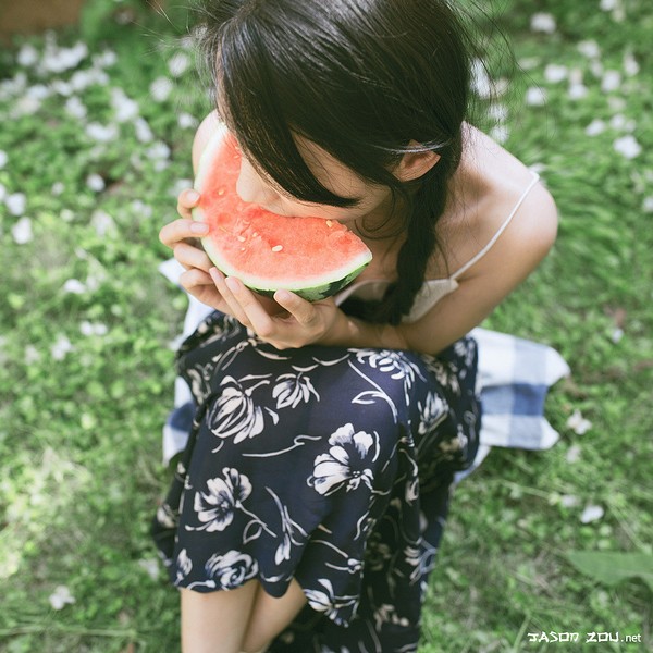 那个女孩留着长长的头发,她有最真的笑容,有甜甜的西瓜