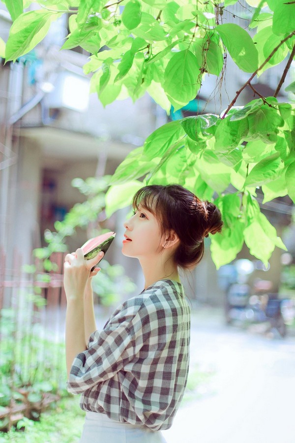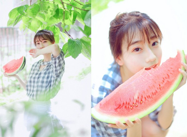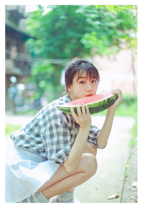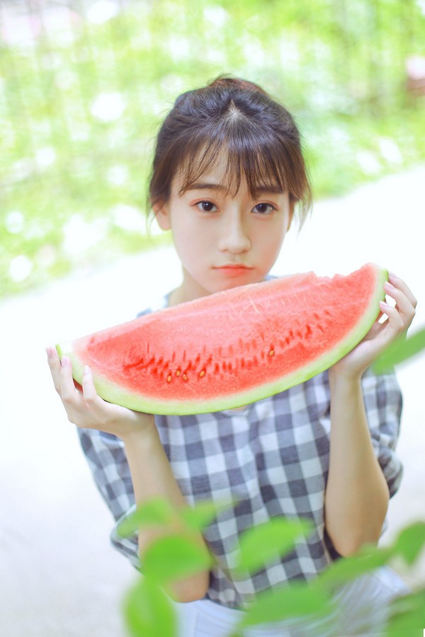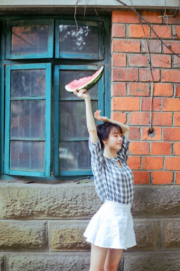 微风、短裙、丸子头、西瓜、