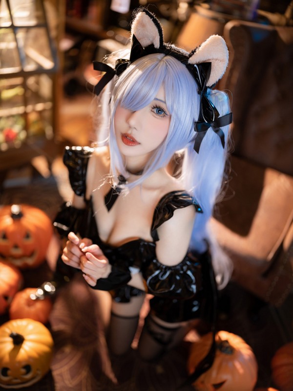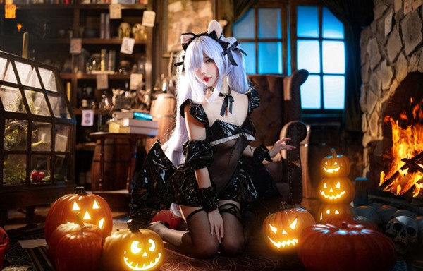 “港区的同伴们都穿着万圣节的装扮呢…说起来我的装扮是什么来着……?有猫耳朵,还有蝙蝠的翅膀…”